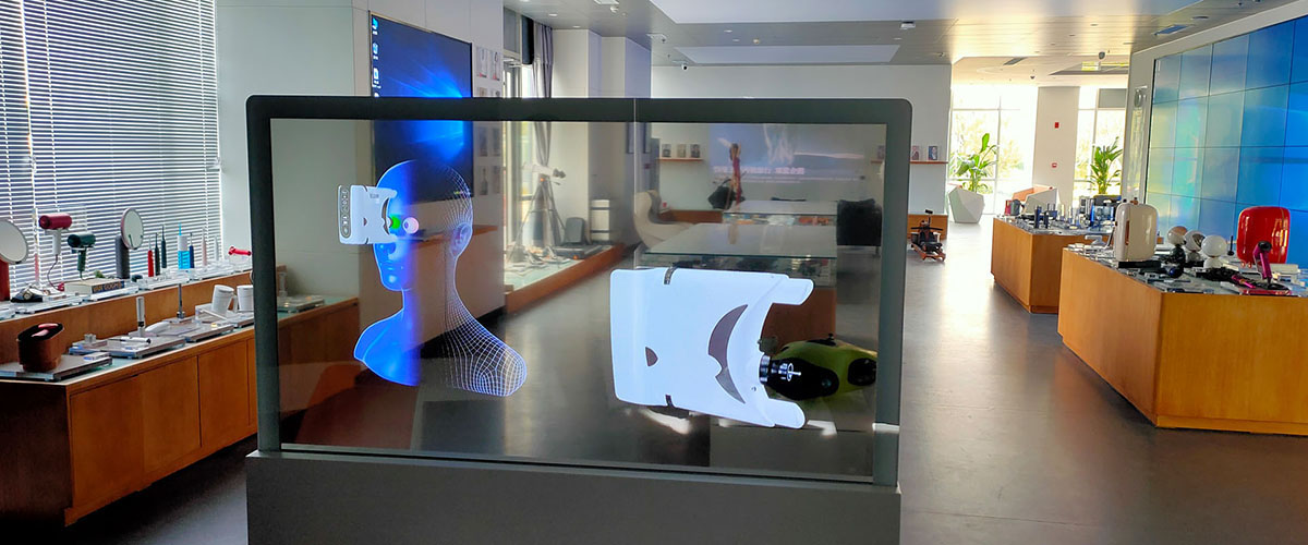 3D全息展示柜的全息幻影成像系統(tǒng)由柜體、分光鏡、射燈、視頻播放設備組成,利用分光鏡成像原理,通過對產品拍攝構建的三維模型進行技術處理,最后將拍攝的產品影像疊加到場景中 ……